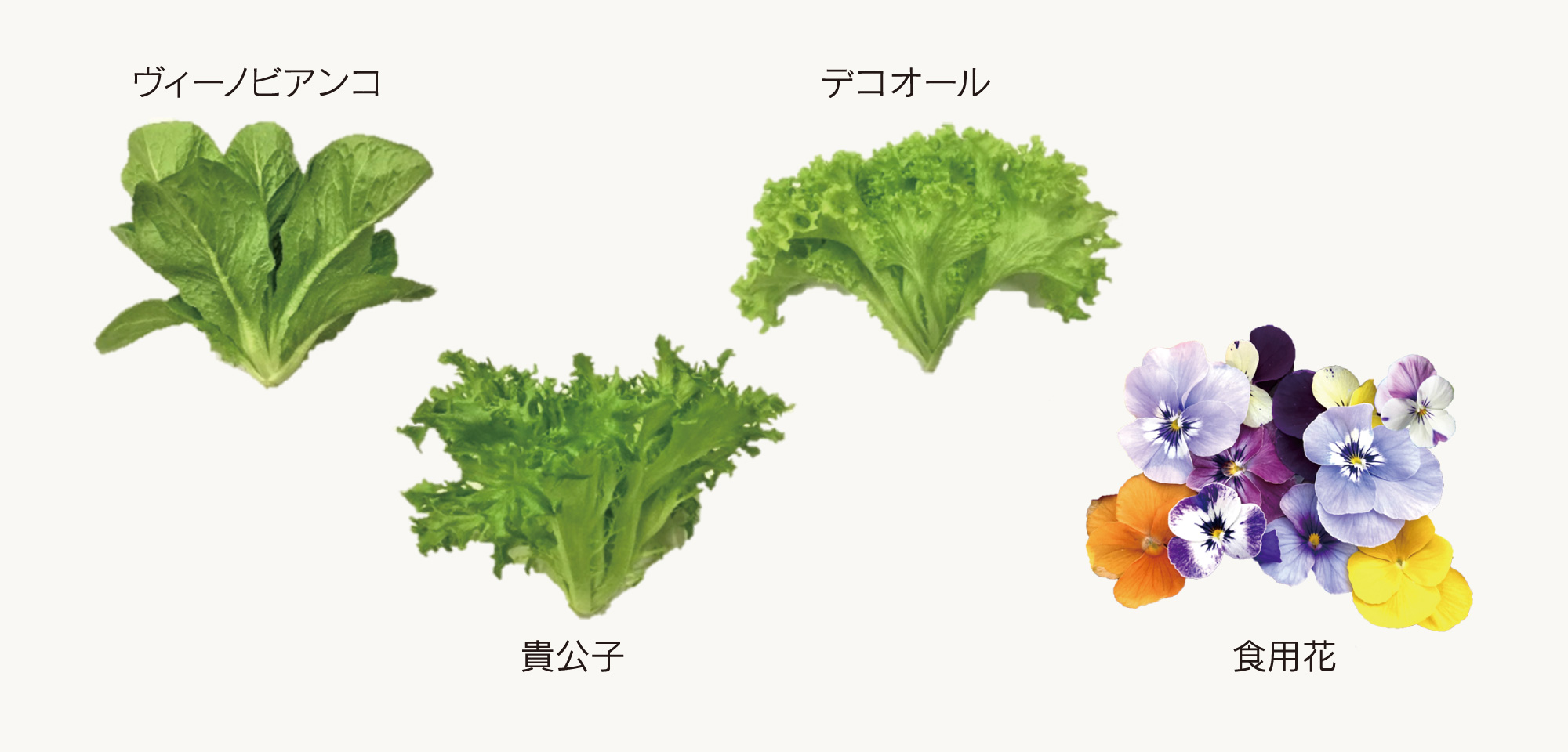 水耕栽培という方法で野菜を栽培していることから、パックからレタスを取り出し、そのままお召し上がりが可能となります。農薬を一切使用せず、きれいな室内農場で、レタスや食用花がすくすくと育つ環境を整備しています。