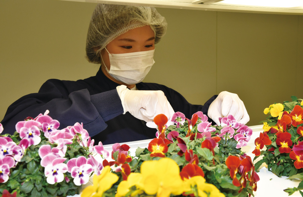 また、私たちが提供するエディブルフラワーは色とりどりのビオラを育成。全食材トップクラスのポリフェノールが含まれていることも証明されています。レストランやパティシェ、大手スーパーの方々から高い評価をいただいています。