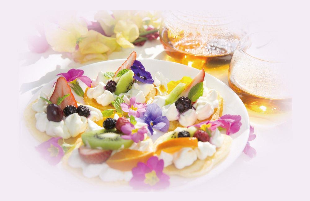 食用花は、あくまで彩りで、味にそこまでは意味がないものと思われがちですが、甘さのあるもの、野菜のような味のもの、しゃきっとしているものなど、口に入れて爽やかな香りや甘さを実感でき、美味しく楽しめます。