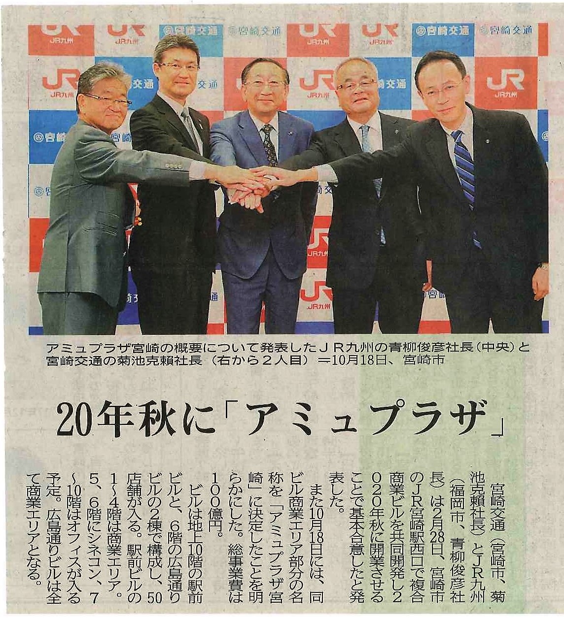 12月29日(土)付け宮崎日日新聞14面2018年県内10大ニュースに20年秋に「アミュプ ラザ」オープン選ばれ、その記事が掲載されました。