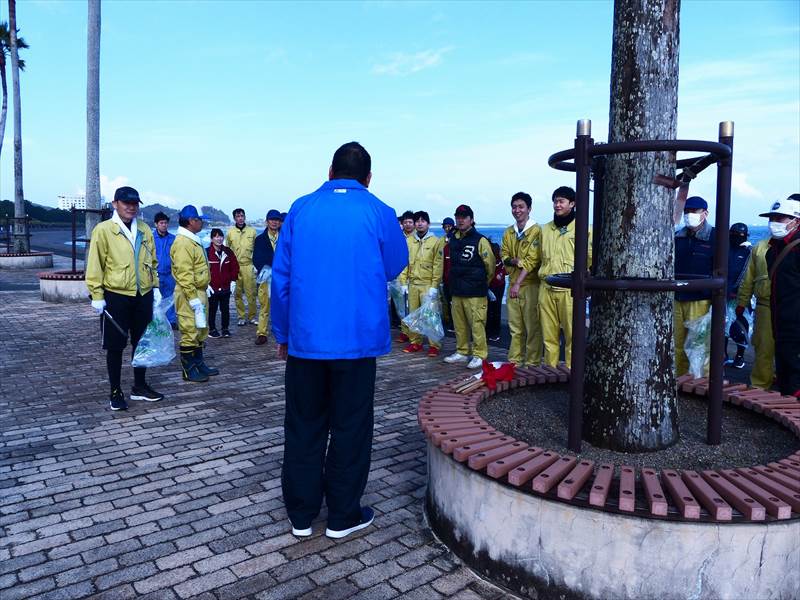 社員を代表して佐藤宏幸常務は「3月6日から10日まで開催される日本商工会議所青年部第38回全国大会ひなたみやざき大会に全国から宮崎に訪問する約8千名の商工会議所メンバーに、美しい宮崎の景観を観ていただきたい。また、地域の人たちも含めて、多くの人たちが気分よく青島を散策してもらえるように、環境整備に努めたい」と意気込んでいました。