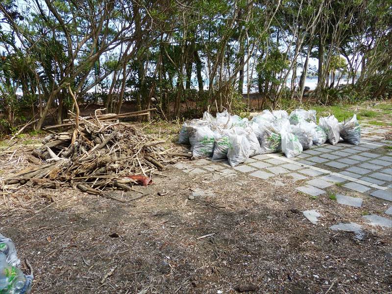 同日は、3~5名のグループに分かれ約2時間作業。大型の流木やプラスティックゴミを拾い海岸線や青島に繋がる橋の周辺を綺麗にしました。