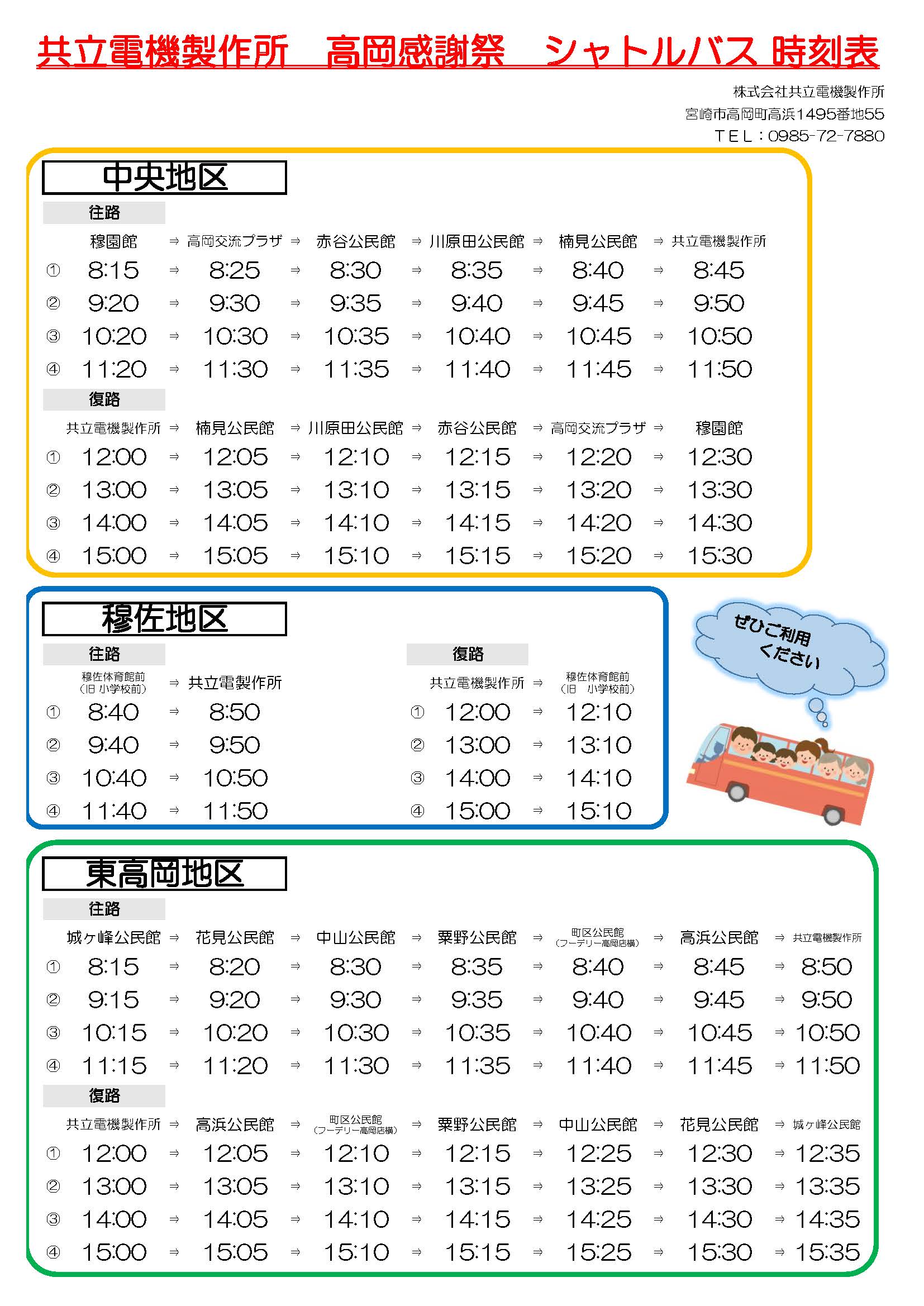 4月27日開催の高岡感謝祭シャトルバス運行表です。