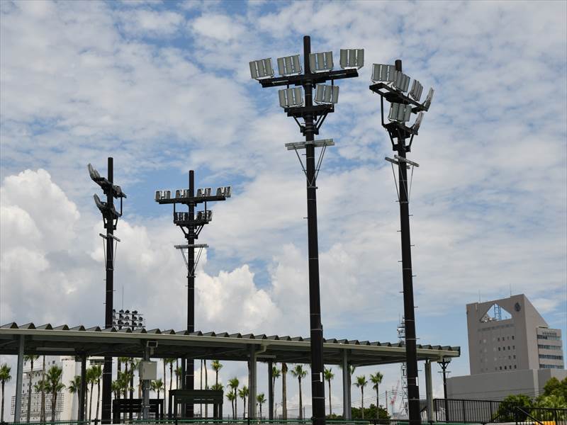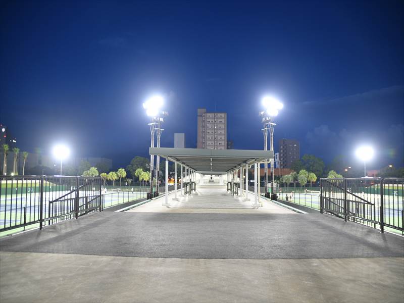 鹿児島市内の鴨池庭球場の夜間照明設備にこのほど共立電照社製のスポーツ用照明設備が採用されました。工事については、鹿児島県が発注し、(株)南部テック様(本社=鹿児島市)が1工区の施工を担当しました。
