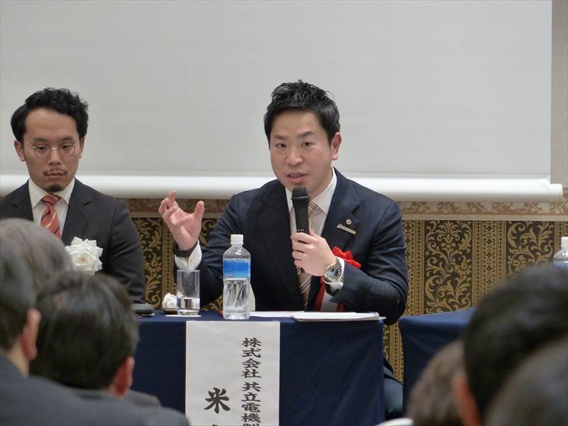 本県の青年経済人を代表して、(株)共立電機製作所の米良 充朝 副社長がそのパネルディスカッションに参加いたしました。弊社の副社長、米良 充朝は、地域の商工会議所の活動ばかりではなく、日本商工会議所青年部で長年、大役を任され活動し、外の視点から見た宮崎のメリットやデメリットも含め、地域おこしを行っています。