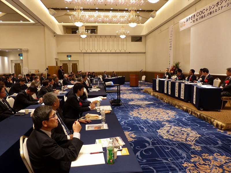 宮崎大学をはじめ本県内の各大学、宮崎県、宮崎県商工会議所連合会、JA宮崎中央会、宮崎銀行などで構成される、みやざきCOC+推進協議会は、去る12月10日、宮崎市内のニューウェルシティ宮崎に於いて、シンポジウム2019「地(知)の拠点」の新たなステージへ、をテーマに講演会を開催しました。約150名が参加しました。
