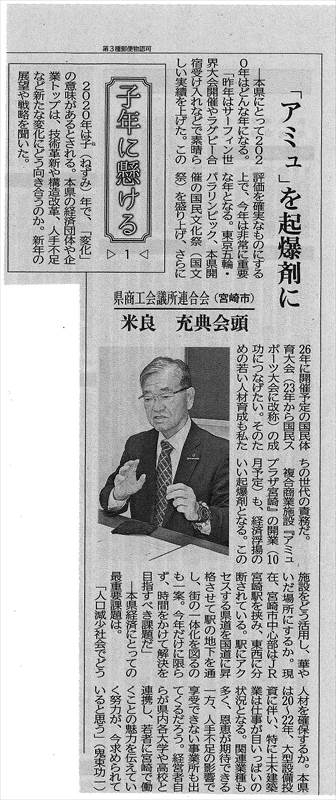 1月8日(水)付け宮崎日日新聞7面経済欄に弊社 社長 米良 充典のインタビュー記事が掲載されました。