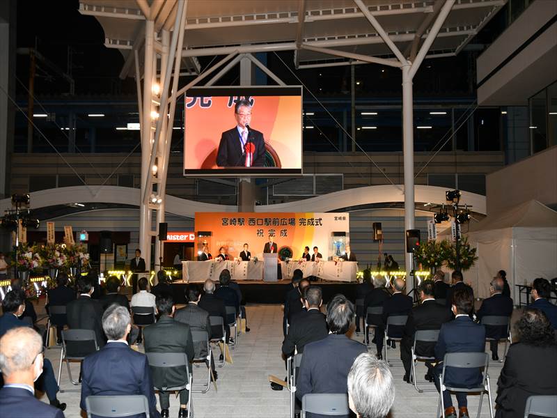 宮崎県、宮崎交通、JR九州が整備を進めていたJR宮崎駅西口広場の完成式が10月16日(午後5時30分~)開催されました。