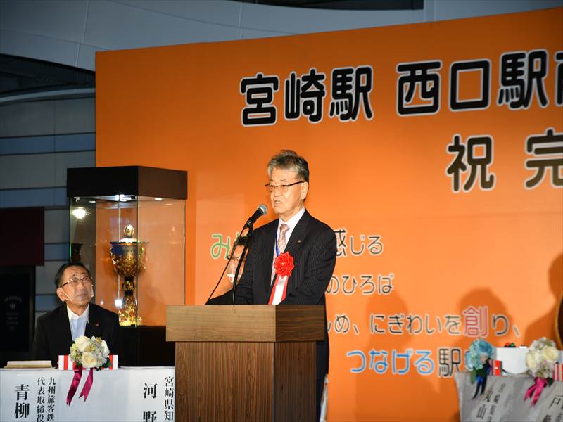米良 充典は「本県の新たな「陸の玄関口」の完成に伴い、さらなる中心市街地のにぎわいを創出し、地域の活性化に期待をしたい」と挨拶いた しました。