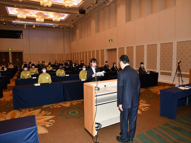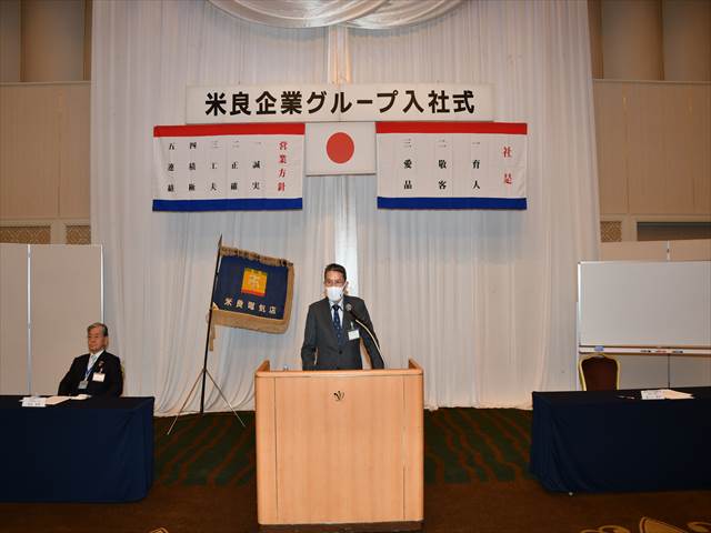 米良社長は「コロナ禍で色々な制約が現在あります。しかしながら、我々は仕事を遂行していかなければなりません。我々にも責任があります。皆さんにも今日から今までにない責任が発生します。本当の意味で親元を離れ、自立することになります。甘えをなくし、仕事を着実に覚えながら、健康に十分気を付け業務を進めてください。我々はあなた方に大きな期待をしています」と挨拶をしました。