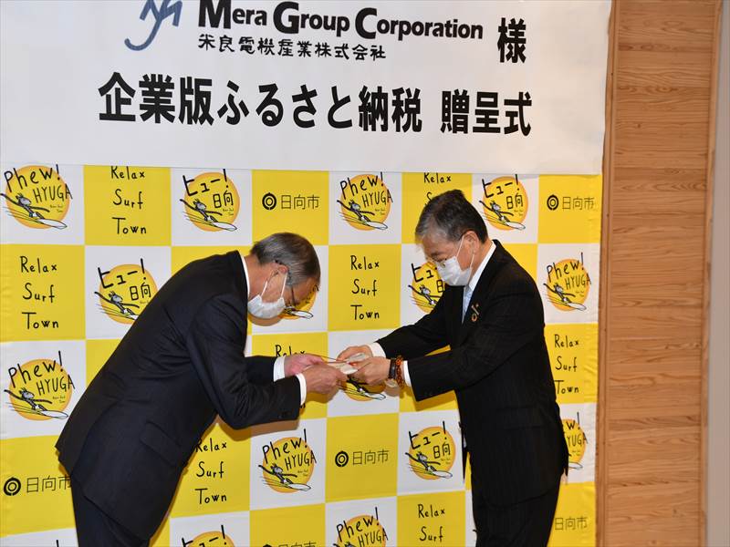 米良電機産業(株)(米良充典社長)は、去る4月12日(火)、企業版ふるさと納税を活用し日向市へ寄付を行いました。