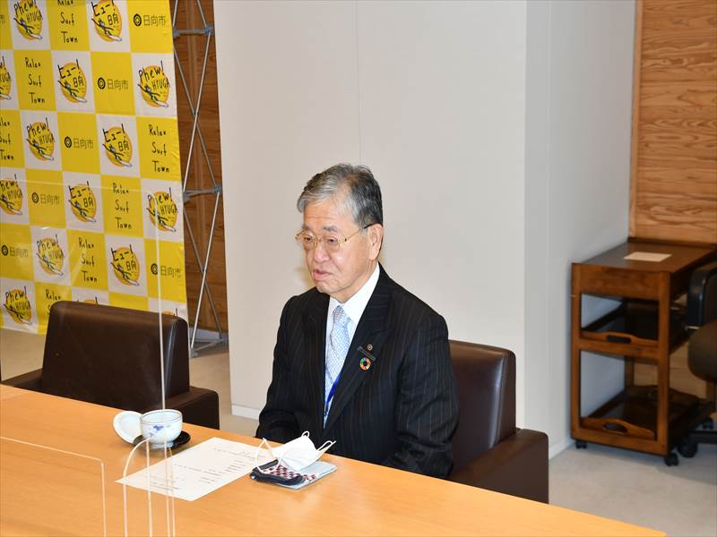 弊社は本県内の地域貢献の一環として、助け合う災害に強いまちづくりプロジェクトの推進を目的に寄付をさせていただきました。贈呈式は市長応接室で行われ、十屋幸平市長から米良社長へ感謝状が手渡されました。十屋市長から「第2期日向市総合戦略の自然豊かで快適な強いまちづくりを行う上で、ありがたく活用していく」と謝辞もいただきました。
