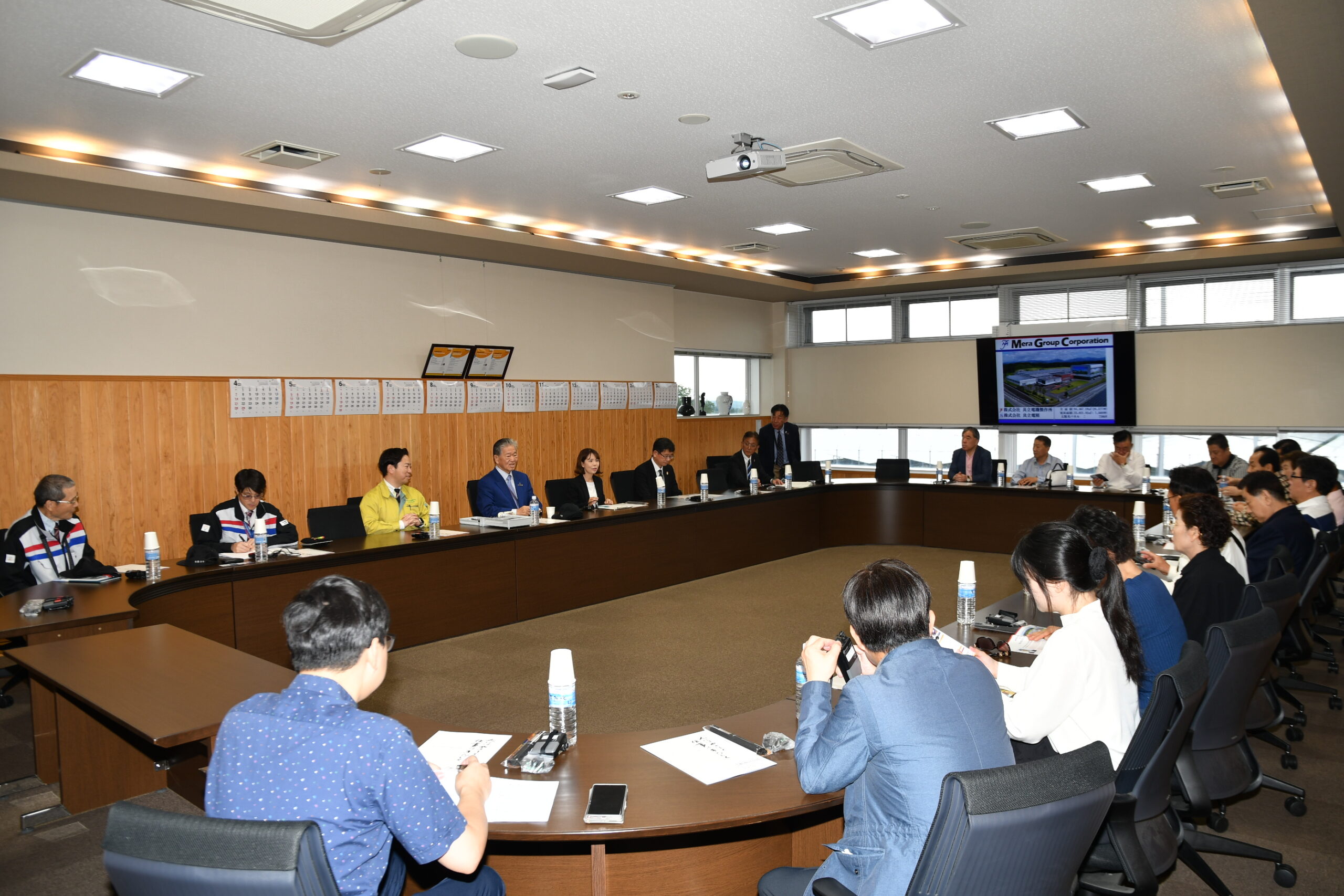 公益財団法人宮崎県観光協会(米良充典会長)が、日韓両国民の友好親善関係を幅広く、かつ深く発展させ、観光、芸術、文化及びビジネスの交流において親密な情報交換並びに共同宣言を行うため、釜山広域市観光協会と姉妹結縁を締結することに伴い、韓国から宮崎を訪れた16名の皆様が、去る4月22日、弊社共立電機製作所三高テクノ工場を訪問されました。弊社が製造する、配電盤設備やLED照明器具、水耕栽培される野菜や食用花の製造工程を見学し、興味深く視察をしていただきました。